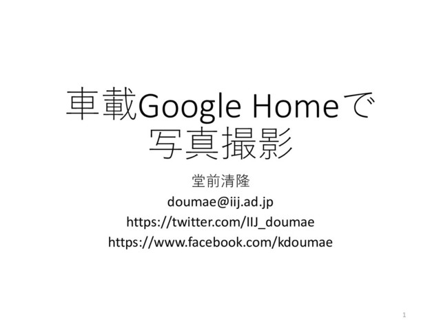 Conclusion • 車にGoogle Homeを積んでみた • 音声操作での写真撮影を試した • タイムラグは少々悩ましい • Google