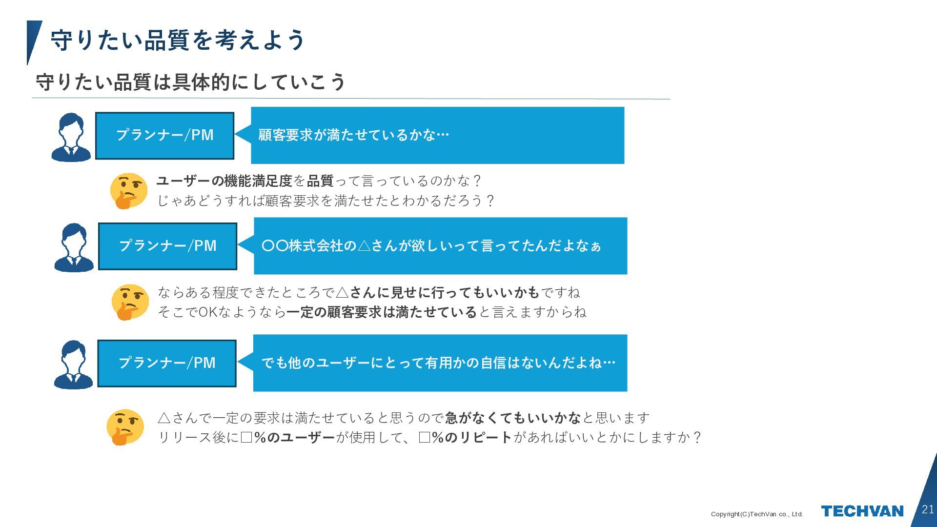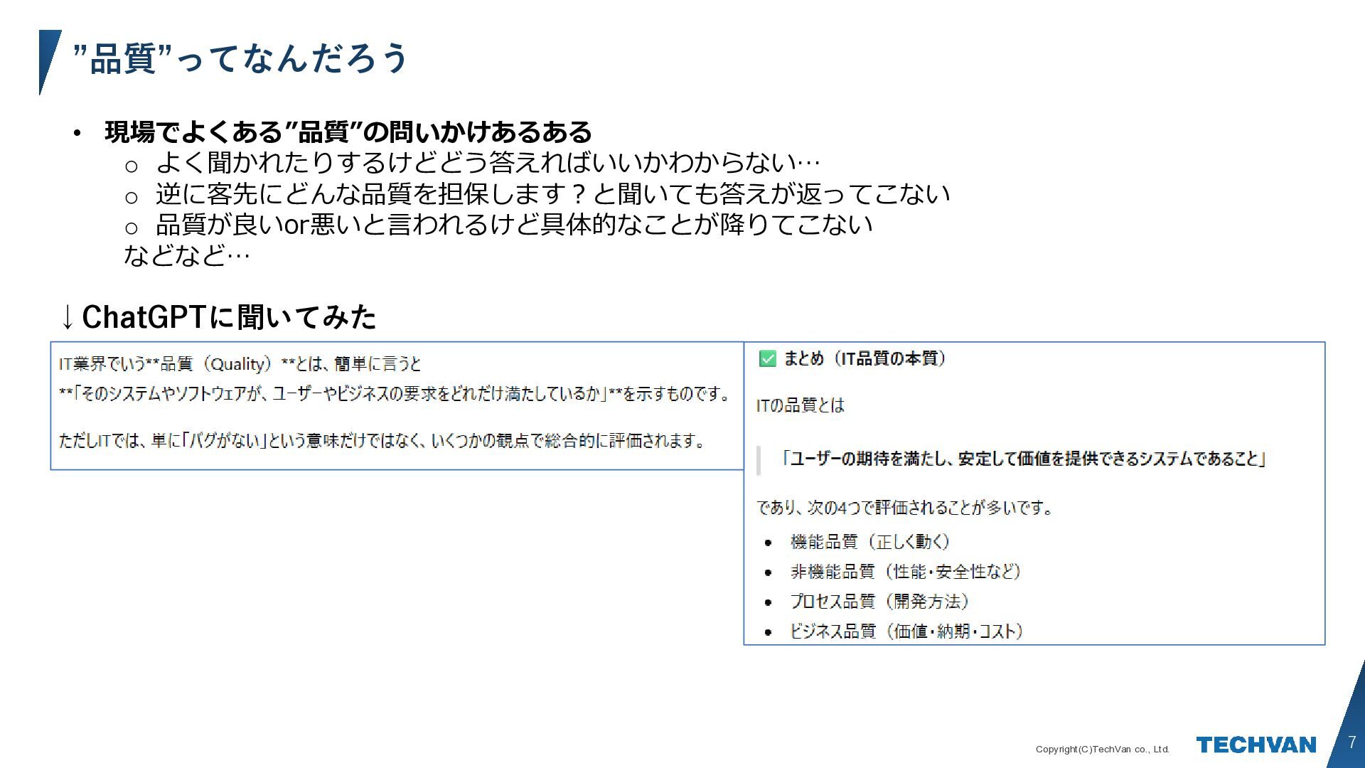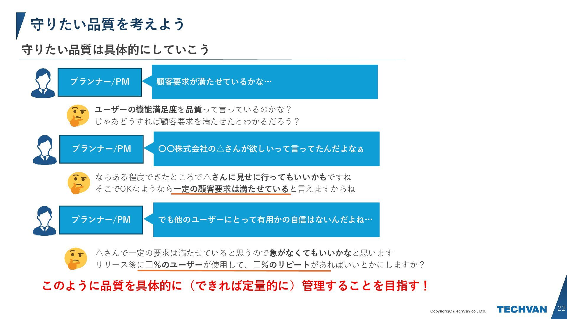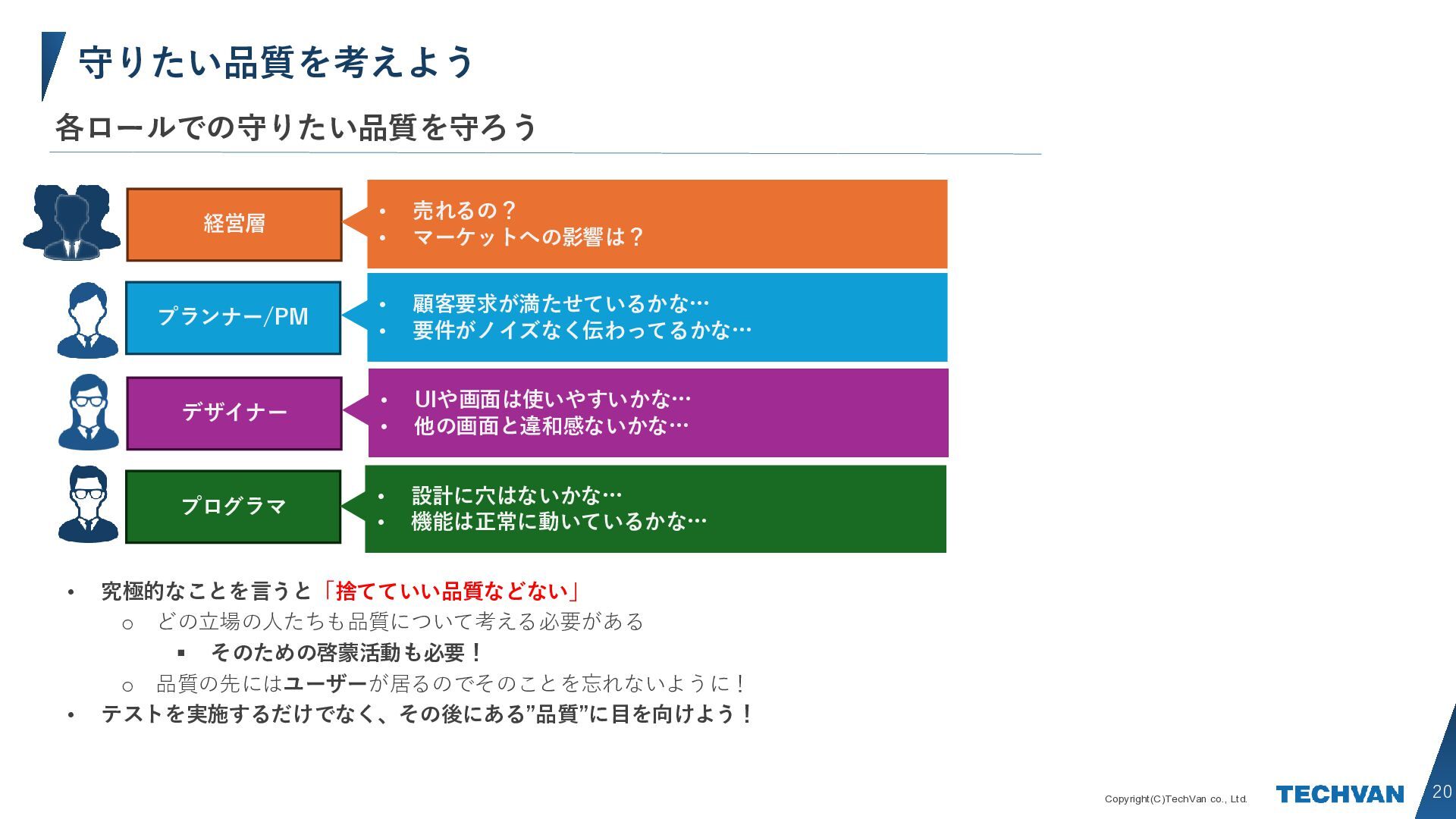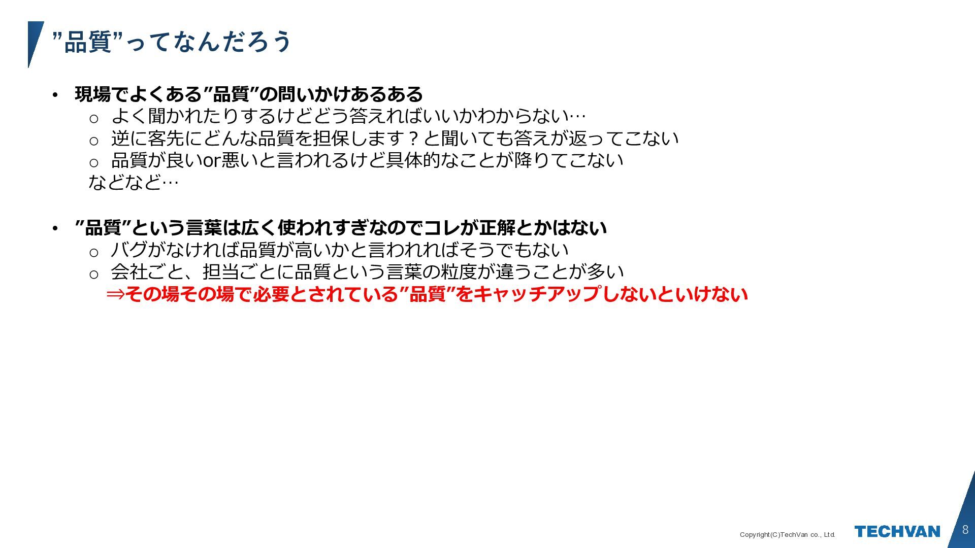CORPORATE INFORMATION 会社概要 会社名 テクバン株式会社 設立 1996年2月29日 資本金 1億円 社員数 1,697名 BASES 拠点 本社 東京オフィス 東京都港区海岸3-20-20 ヨコソーレインボータワー4,12階 東海支社 浜松オフィス 静岡県浜松市中央区板屋町111-2 浜松アクトタワー14階 静岡オフィス 静岡県静岡市駿河区南町14-1 水の森ビル9階 青森事業所 青森オフィス 青森県青森市長島2-13-1 AQUA青森スクエアビル4階 福岡事業所 福岡オフィス 福岡県福岡市博多区御供所町2-60 テクニカハウス福岡5階 CERTIFIED 認証 セキュリティ ISO27001(JP15/080348)2015年1月 ※本社のみ プライバシーマーク(第10823104号)2008年12月 品質 ISO9001(JP23/00000335)2023年10月 ※本社受託開発部門のみ 労働者派遣事業 派13-301759 2006年6月 電気通信事業者 A-26-14012 261 テクバンは 最先端のIT技術を駆使して お客さまのビジネスに貢献します 技術=Technology 先駆者=Van この基本理念が社名に込められています