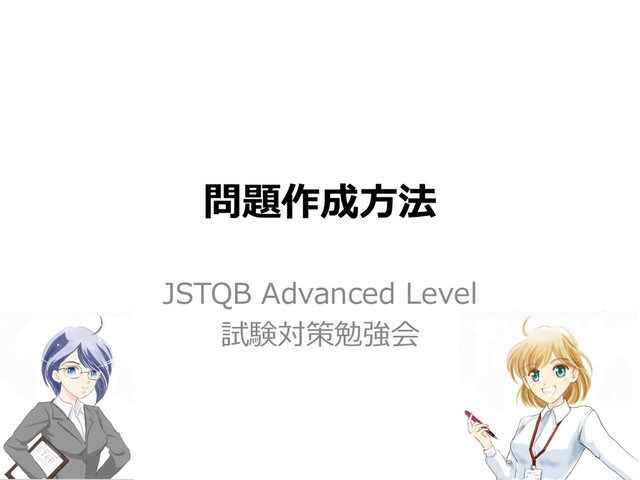 JSTQB Advanced Level 試験対策勉強会として作り上げてきた模擬問題作成の方法を紹介しました。
