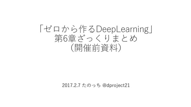 「ゼロから作るDeepLearning」 第6章ざっくりまとめ (開催前資料) 2017.2.7 たのっち @dproject21