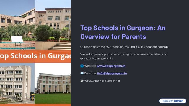 over 500 schools, making it a key educational hub. We will explore top schools focusing on academics, facilities, and extracurricular strengths. G Website: www.dpsgurgaon.in > Email us: [email protected] WhatsApp: +91 81305 14455