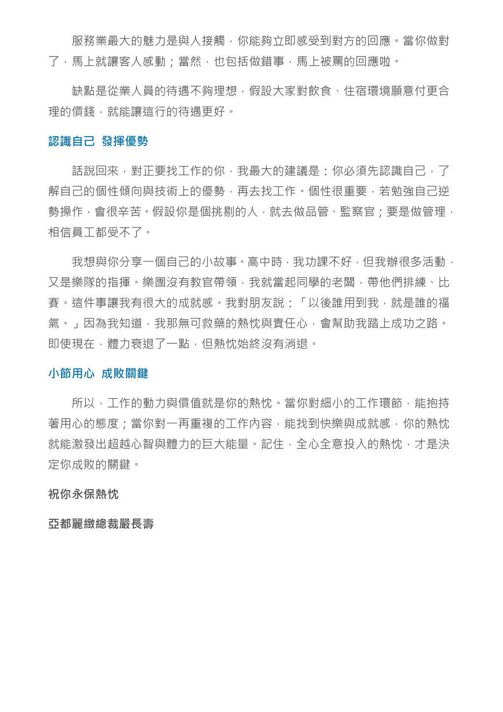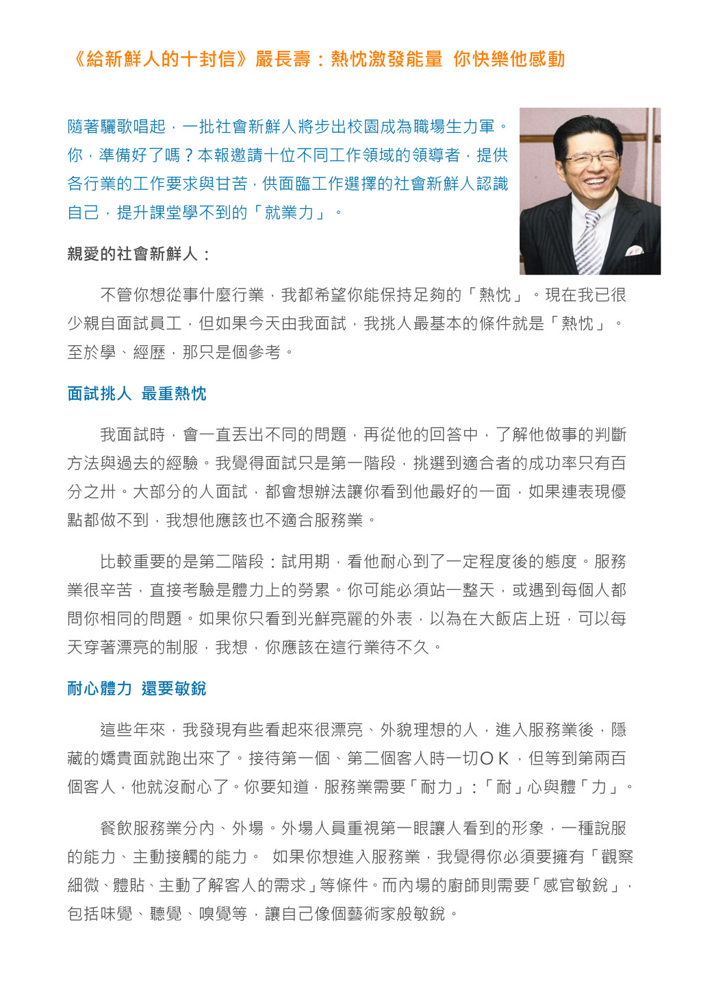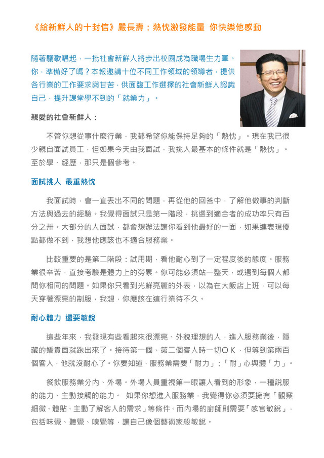 [服務]嚴長壽:全心全意投入的熱忱,才是決定你成敗的關鍵。
