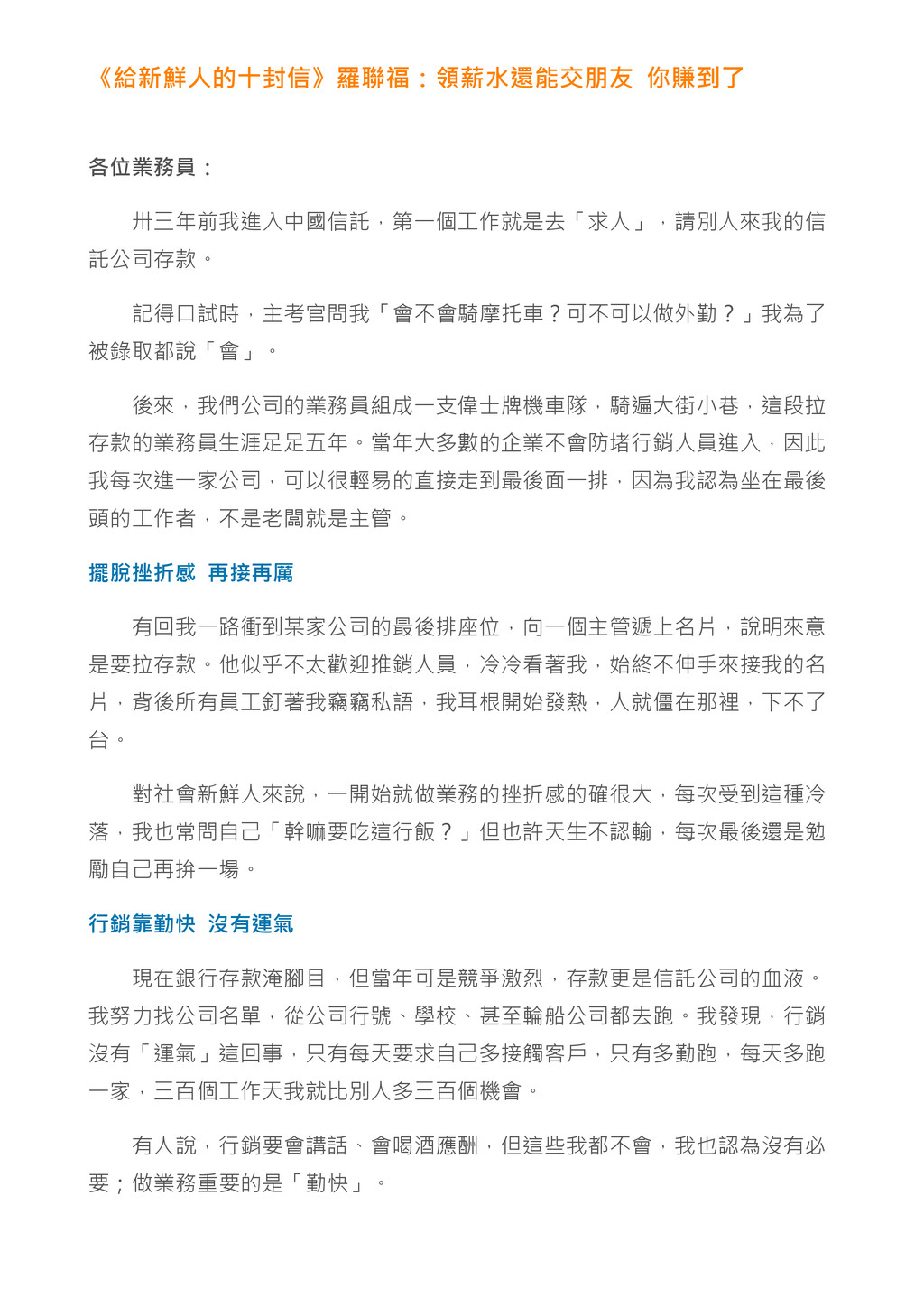 [業務]羅聯福:你要早一步知道自己要什麼,找出自己的優勢,修正劣勢。