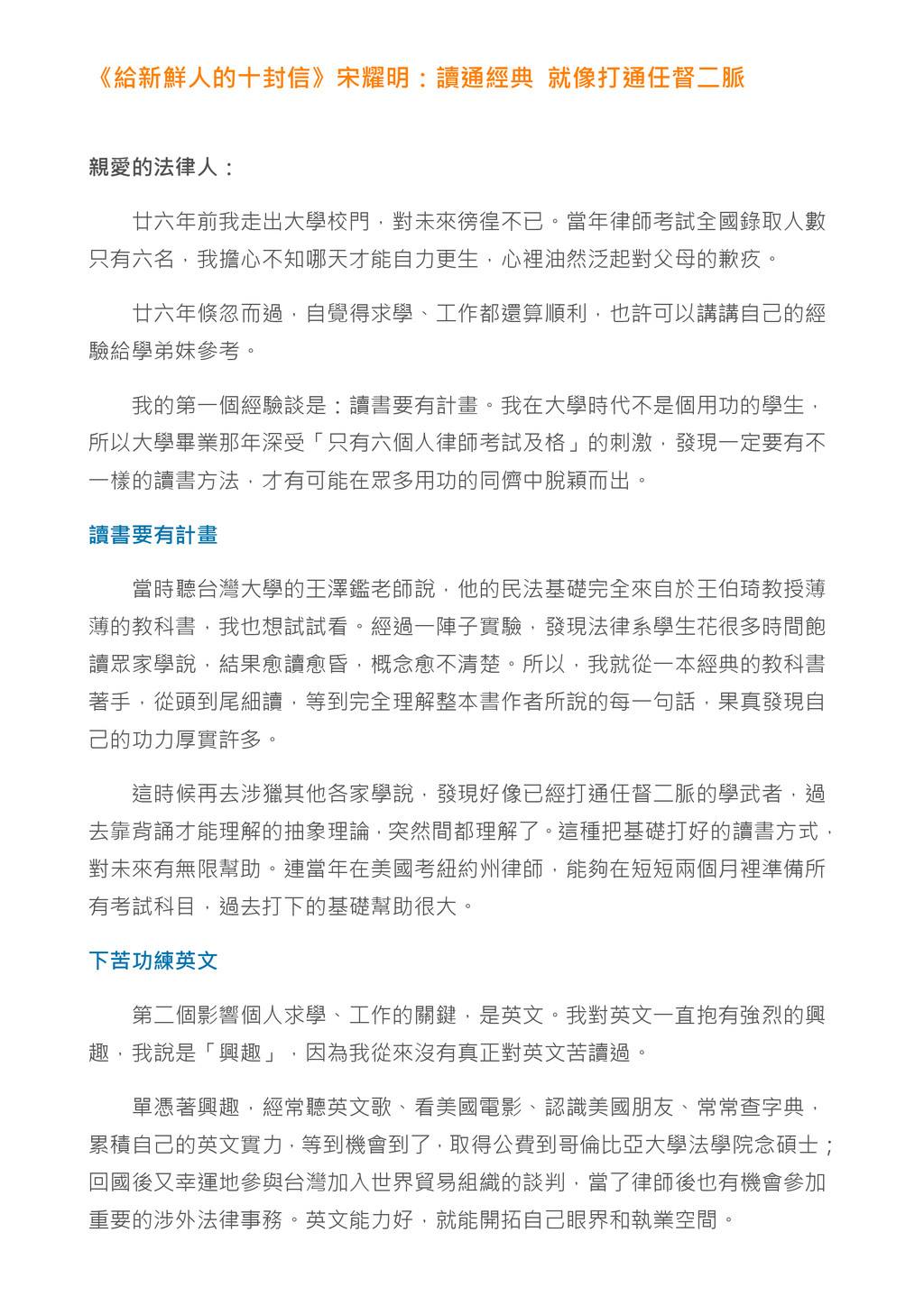 [法律]宋耀明:求學工作中的成果,要靠很多好老師、好朋友、好長官、好同事的鼓勵和幫助。