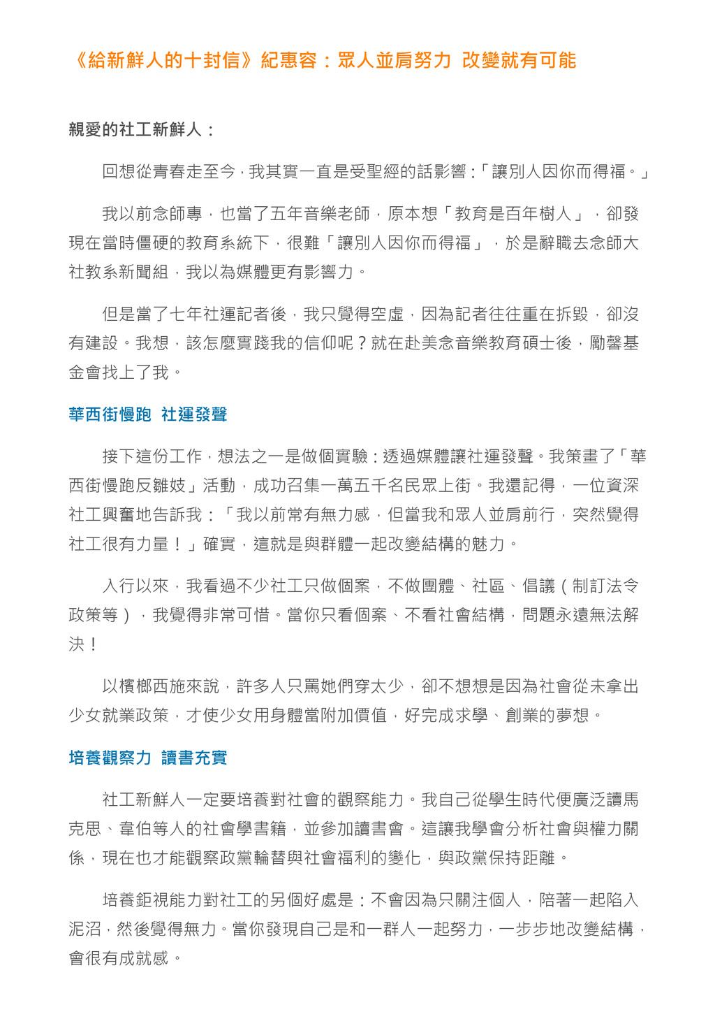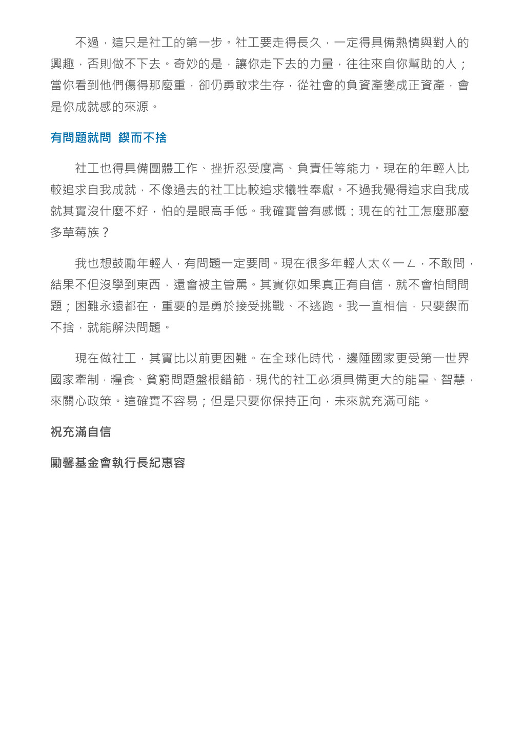 [社工]紀惠容:困難永遠都在,重要的是勇於接受挑戰、不逃跑。