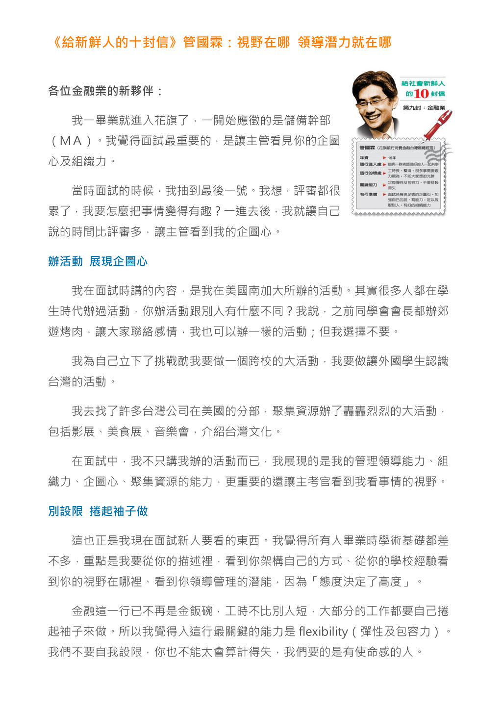 [金融]管國霖:如果你太狹隘,只會不停地挫折並喪失機會。