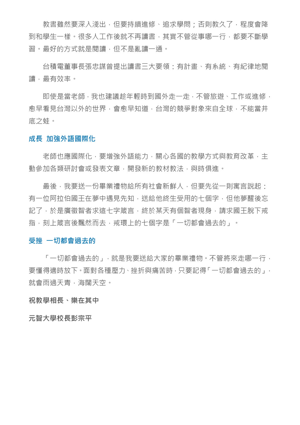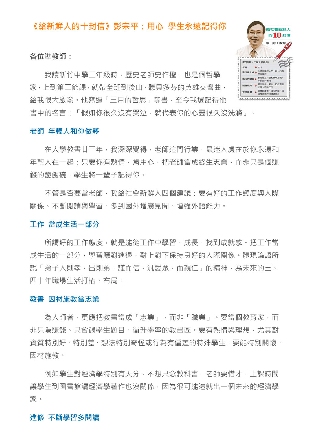 [教育]彭宗平:所謂好的工作態度,就是能從工作中學習、成長,找到成就感。。