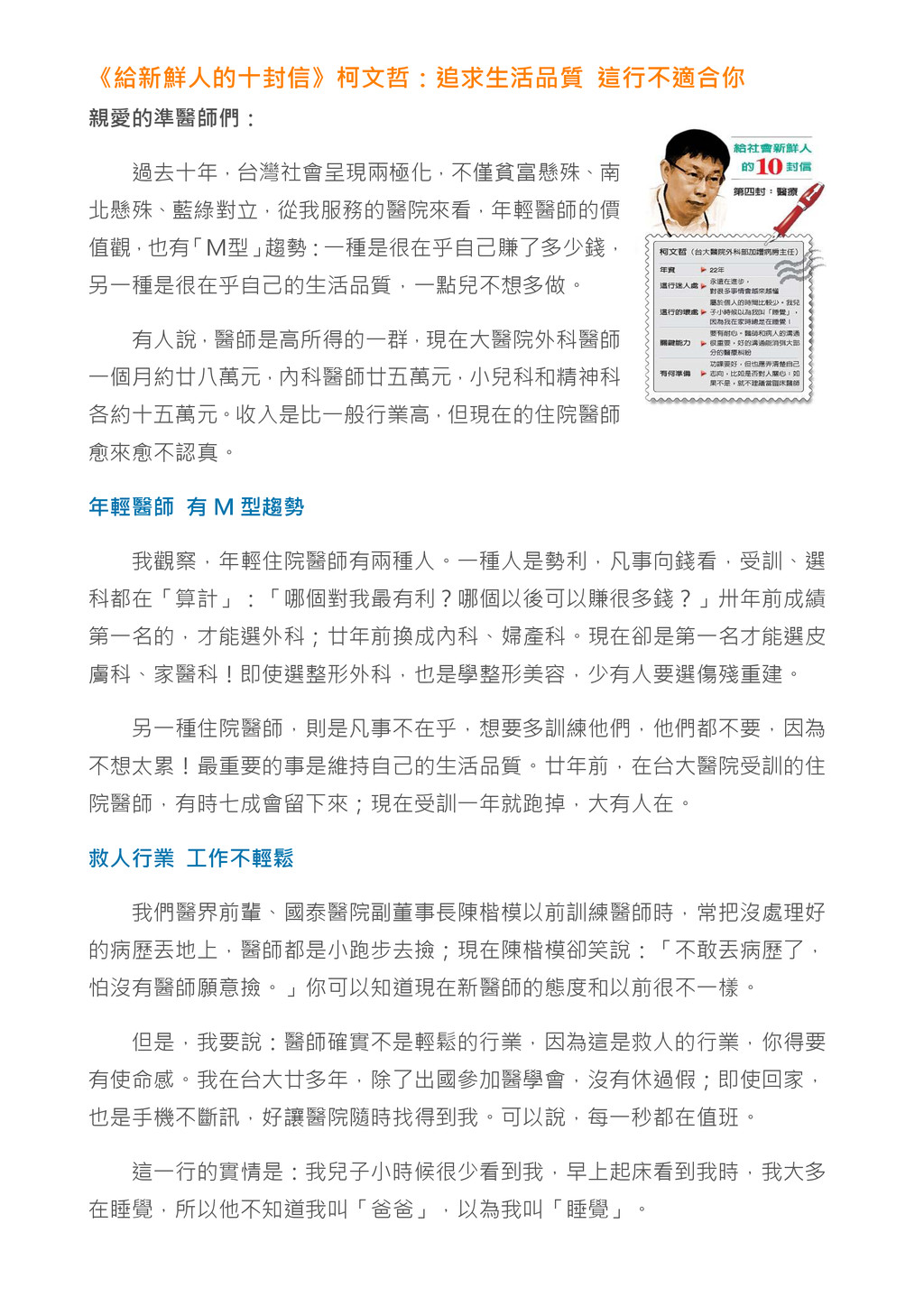 [醫學]柯文哲:先確定自己的人生觀,不要做不切實際的期望。