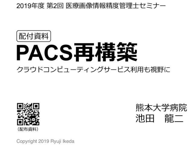 /+=)% • >B83 2D=) 83;) ! /+=) @"?C4 614 ,504 >B83(A:9.' PHR ! #<GE :*$& https://www.mhlw.go.jp/stf/shingi2/0000166275.html http://www.soumu.go.jp/main_content/000567229.pdf https://www.meti.go.jp/policy/it_policy/privacy/iryougl.pdf Copyright 2019 Ryuji Ikeda