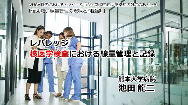 VUCA時代におけるイノベーション〜新型コロナ感染症の対応のあと…〜 「伝えたい線量管理の現状と問題点 」 核医学検査における線量管理と記録 レバレッジ 熊本⼤学病院 池⽥ ⿓⼆