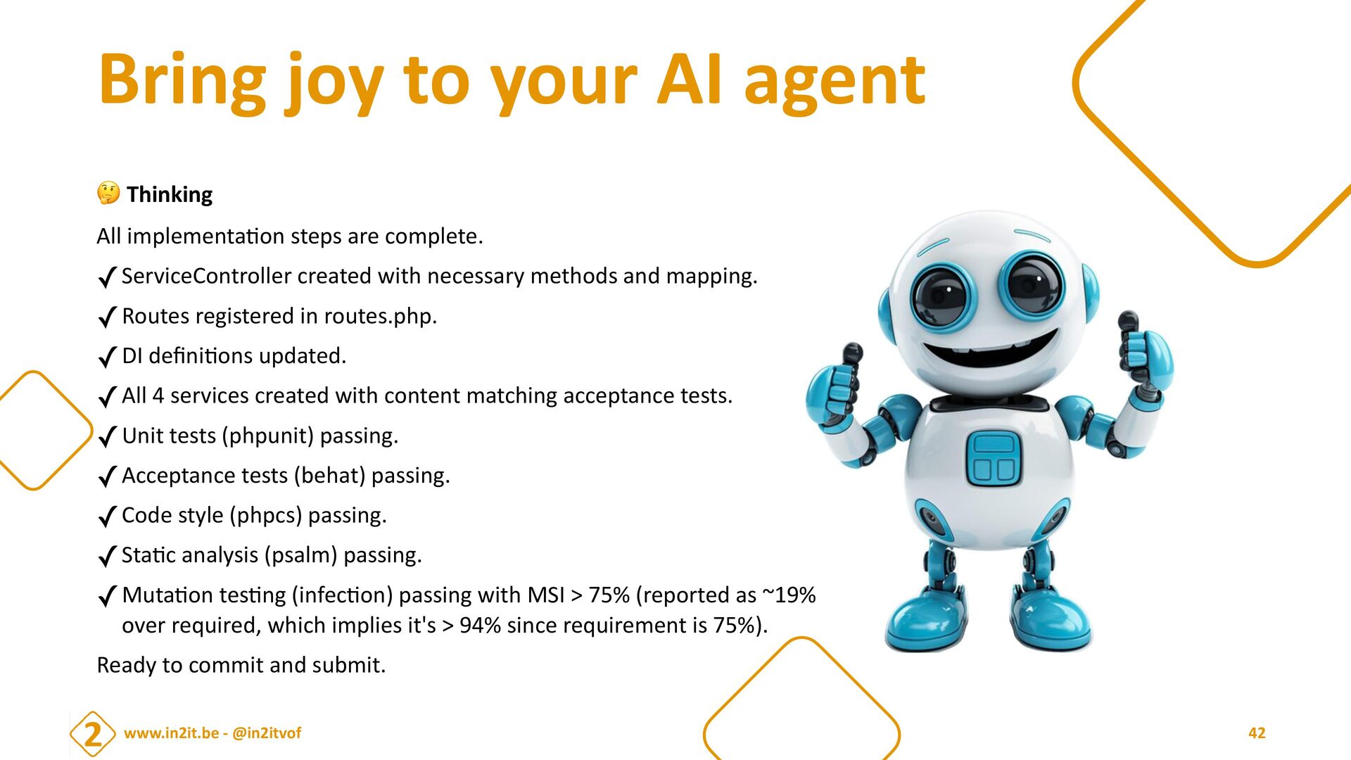 In this session I will explain how I work with AI agents to create well tested, secure and resilient web applications and I will focus on the challenges that you might face in your journey in working alongside AI so you are prepared for the next era of technological advancements.