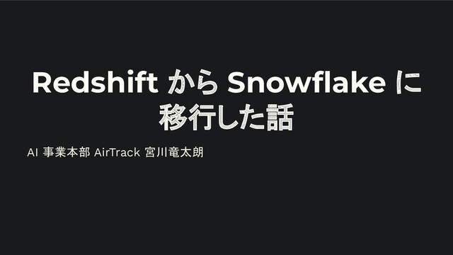 Redshift から Snowflake に 移行した話 AI 事業本部 AirTrack 宮川竜太朗