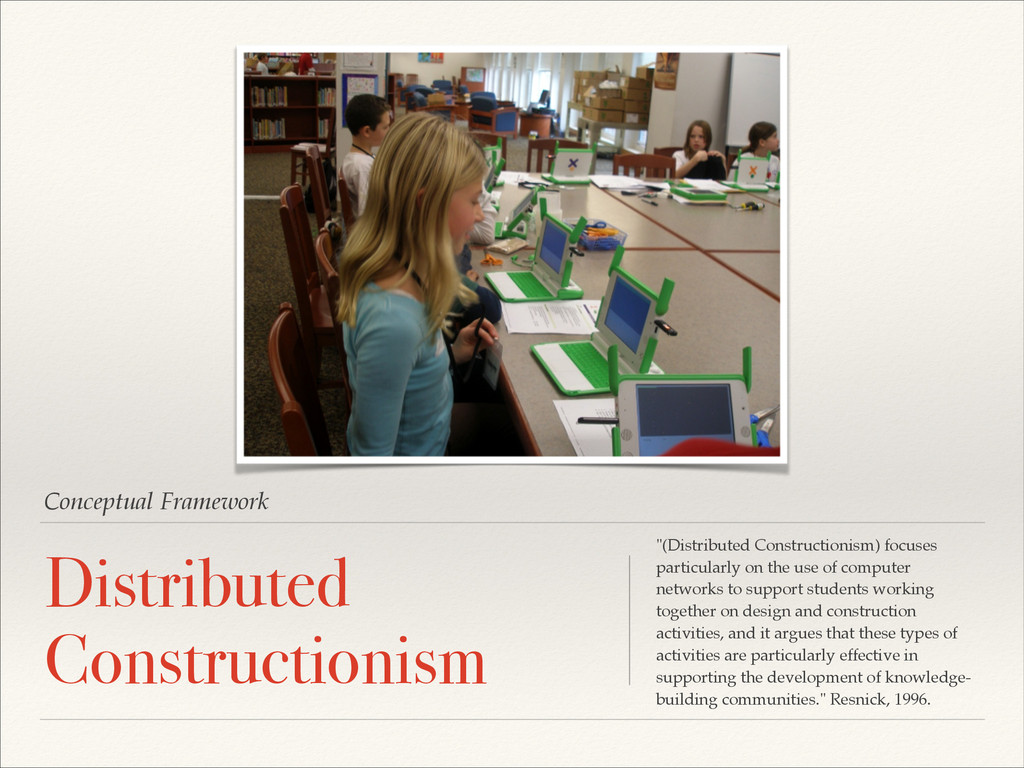 use of computer networks to support students working together on design and construction activities, and it argues that these types of activities are particularly effective in supporting the development of knowledge- building communities." Resnick, 1996.