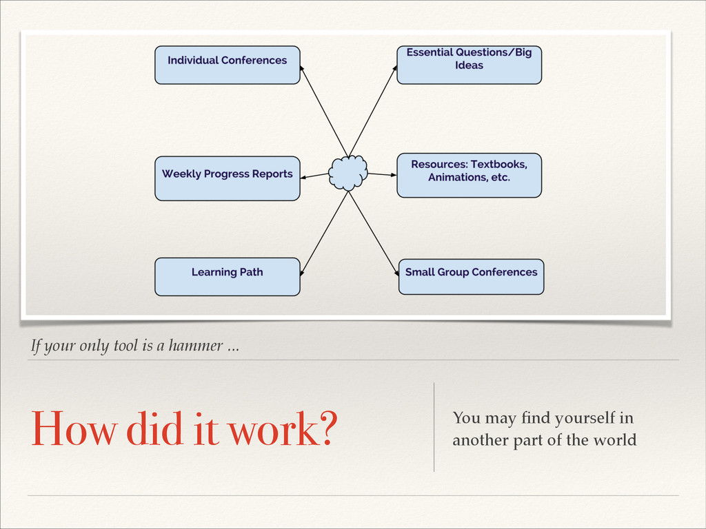 mandated year end exams!! ❖ Student work demonstrated more depth than in previous years! ❖ Students managed themselves spontaneously, creatively, and productively! ! ❖ Students' learning networks were enlarged and made more robust for the most part (success was correlated to having viable networks)