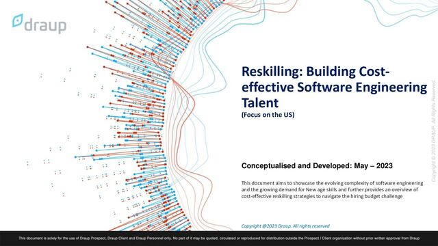 the emerging and in-demand cloud skillsets of a sample role - ‘Software Development Engineer’ Source: The represented data has been derived using Draup’s Proprietary Talent Database which tracks 30,000 skills. Note: The research is based on internal analysis. The list of skills is not exhaustive. Software Systems And Frameworks Debugging Database Management Systems Data Engineering & Infrastructure Management Application and Web development Cloud Computing DevOps GPT Prompt Engineering for Developers (AutoGPT , OpenAI etc) Front-end or Client-side Technology Stack (Reactjs) Performance Tuning (Profiling Tools, Code Optimization & Load Testing) Non-relational Database Mgmt.: MongoDB, Cassandra, Redis, Elasticsearch) Data Warehousing: (Amazon Redshift, Google Big Query, Snowflake etc.) Natural Language Processing Tools (NLTK, spaCy) IoT Protocols and Frameworks (MQTT, CoAP, AMQP, LoRaWAN,etc ) Low-code or No- code Platforms (Appian,Mendix, Kisslfow etc) Serverless & Hybrid Cloud Computing Programs- (Lambda , EC2 etc) Debugging Serverless Applications (AWS Lambda & Azure Functions) Ruby on Rails GO Language (and other in-demand languages ) Understanding of Data Structures And Algorithms (Leetcode, Etc. ) Cloud Debugging (CloudWatch Logs, Azure Application Insights, & Google Stackdriver) NoSQL Databases (Cassandra, Aerospike, DynamoDB) Big Data Processing and Analysis Tools (Hadoop, Spark) Machine Learning Algorithms: (Decision trees, Linear & Logistic Regression, etc. Cross-platform Development: (React Native, Flutter, Xamarin) Wearable Devices & Mobile App Development (WebRTC, RTSP) Containerization & Orchestration (Docker, Kubernetes, etc.) Continuous Integration/Conti nuous Delivery (CI/CD)(Jenkins, GitLab,CircleCI,etc) Software Systems & Frameworks (Anglularjs, Git, Github, and . NET Security Debugging (penetration testing, static code analysis, etc.) Database- Processing Engines (Presto.etc) Machine Learning Frameworks (TensorFlow, PyTorch) Advanced Code Editors (IntelliJ, Eclipse) Serverless Architecture & Platform (AWS Lambda, Azure Functions) Infrastructure as Code Tools (Terraform, CloudFormation, & ARM templates) Programming Languages (JavaScript, Java, C++, PHP, Python) Familiarity with Software Dev. Methodologies (e.g., Agile, Scrum) Profiling (Visual Studio Profiler, JetBrains dotTrace, and Apache Jmeter) Databases and Object-relational Mapping (ORM) Frameworks Source Control Mgmt. Tools (GitHub, Bitbucket) Microservices Architecture Tools (Spring Boot, Apache Kafka) Basic Web Development Tools (HTML/CSS, JavaScript) API Development: (REST, GraphQL, OpenAPI, Swagger etc.) Platform & Infrastructure as- a-Service tools (Heroku) Configuration Management Tools (Chef, Puppet) Computer Architecture, Operating Systems & OOPs Operating Systems Knowledge (Linux & Windows &other OS-tech) Debugging Tools and Techniques (Visual Studio Debugger, GDB, and LLDB, etc.) Basic Relational Database Mgmt. Systems (MySQL, PostgreSQL) Big Data Querying and Analysis Tools (SQL, Hive, and Presto, etc.) Data Integration and ETL (Apache NiFi, Talend, and Informatica) Front-end Development: (HTML, CSS, JavaScript, React, Angular, Vue.js) Back-end Development: (Node.js, Ruby on Rails, ASP.NET, Django, Flask, etc.) Cloud Platforms (AWS, Azure, Google Cloud, Platform, etc.) Emerging Skillsets: Roles such as SDE are evolving rapidly. New-Age SDE skills such as Containerization, NLP tools and Microservices architecture are in high demand A. Internal Upskilling(1/2) B. Internal Reskilling C. Recruit to Reskill Emerging skills Existing skills