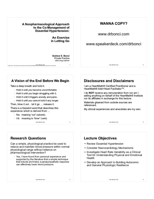 PRINTER FRIENDLY NOTES: A Nonpharmacological Approach to the Co-Management of Essential Hypertension: An Exercise in Letting Go