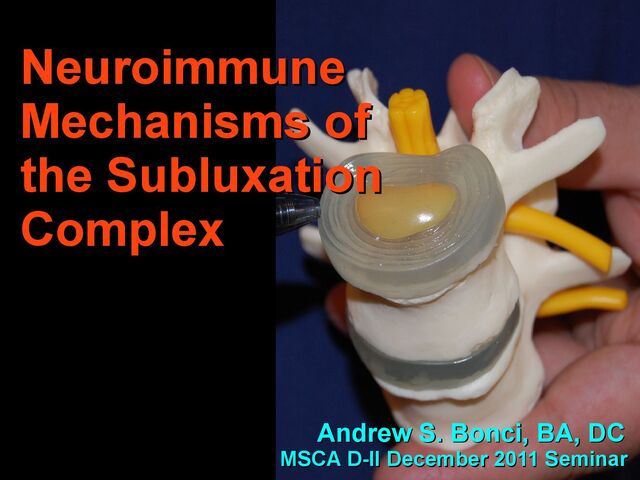 DC MSCA D-II December 2011 Seminar MSCA D-II December 2011 Seminar Neuroimmune Neuroimmune Mechanisms of Mechanisms of the Subluxation the Subluxation Complex Complex
