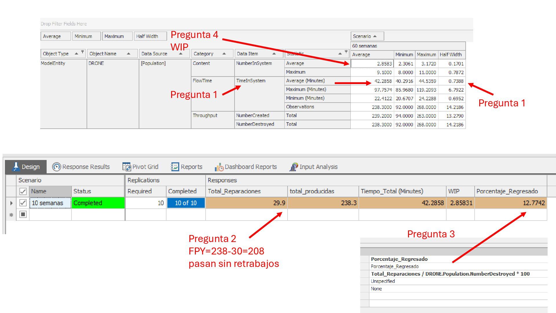 Pregunta 1 Pregunta 4 WIP Pregunta 2 FPY=238-30=208 pasan sin