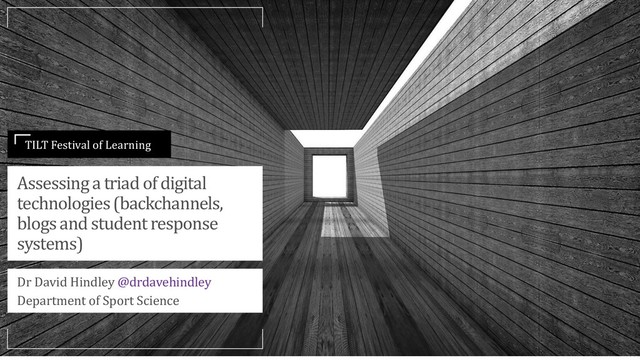 Has the comment ‘lectures could be more interactive’ ever appeared on your end of module evaluations? Have you toyed with the idea of trying something different but returned to the status quo because of time constraints, or fear of failure? My presentation at the TILT Festival of Learning (Tues 26th June) connects my experiences as a sport sociology lecturer with a term of experimenting with backchannels, blogs, and student response systems.