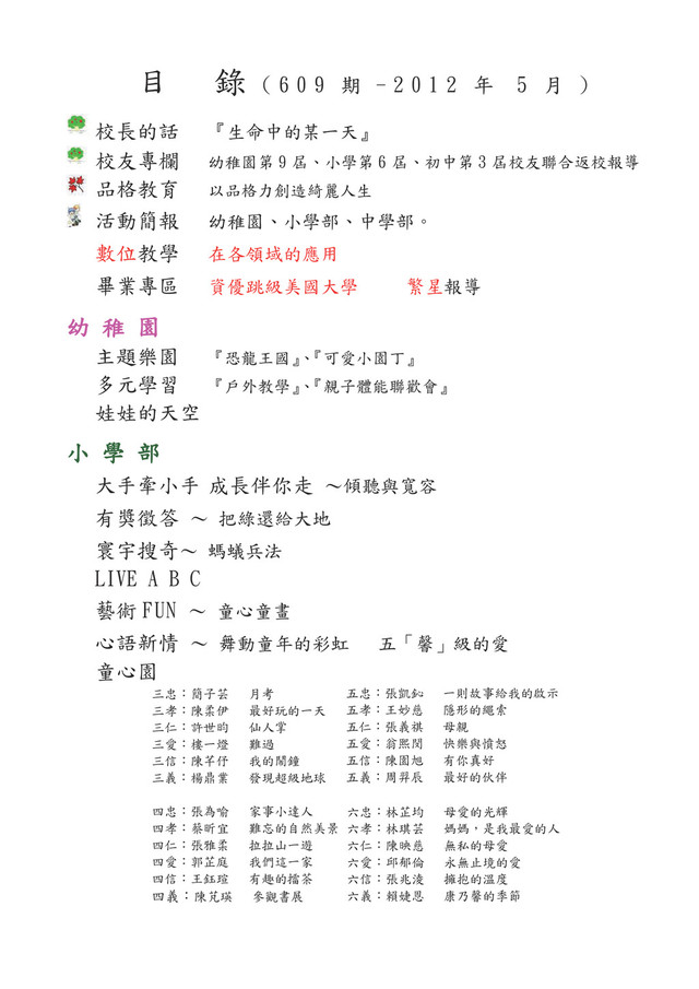 609 期 (2012 年 5 月) Renting an Apartment in Taipei 高二愛 陳尚陽 Chen, Shang-Yang Having a place to relax on the weekend would be lucky. Sadly, although there are several places suitable for me, most of them are in Taipei City, and that’s the worst thing. As everyone knows, the real-estate prices in Taipei are insane! Even if I had a job now and continued working for ten years in a row, I could still only buy a toilet in downtown Taipei. Therefore, to find a cheap and convenient apartment will be my ultimate goal for years to come. Let’s see when the day will come. If I could rent a house, convenience would be the first thing I would consider. No matter how luxurious or comfortable a house is, there will be no point if it is thirty kilometers away from downtown. To be qualified as my cozy home, the candidate must be close to an MRT station, since I don’t want to be stuck in the scary traffic jams of Taipei every morning. Next, a nearby supermarket like Costco and Carrefour is required. That way I wouldn’t be starved to death. Also, to make sure that I will not be bored, entertaining facilities must also be accessible in the area, such as movie theaters, baseball fields, bowling alleys, and so on. Finally, to improve my living quality, parks such as Da-an Forest Park are essential. Worse Than a Quitter is The Person Who is Afraid to Begin 高二仁 鄭雅勻 Cheng, Ya-Yun You have probably heard the proverb “Worse than a quitter is the person who is afraid to begin”. This proverb is an advice which was given by my English teacher, and it has a great influence on me. Take me as an example, I felt frustrated in my first year in senior high school, because it w as very difficult for me to memorize all the formula and understand all the laws, such as Kepler’s laws of planetary motion for physics. When I was about to give up; however, thanks to my English teacher’s timely encouragement, I have the courage to try again. At first, I wasn’t believe in myself, and was lack of confidence, but I spent much of the time reading textbooks again and again, so I can make it. Afterwards, I became more patient in learning, and I also figured out the best way for myself to learn. By learning step by step, I got the tips in doing physics question, and made progress on it. The saying has an effect on me not only on school work, but on dancing. I have a passion on dancing, but the way to a great dancer was tough. Last year, I was the leader of the school dance club, so I need to come up with a five minutes choreography for school’s talent show.