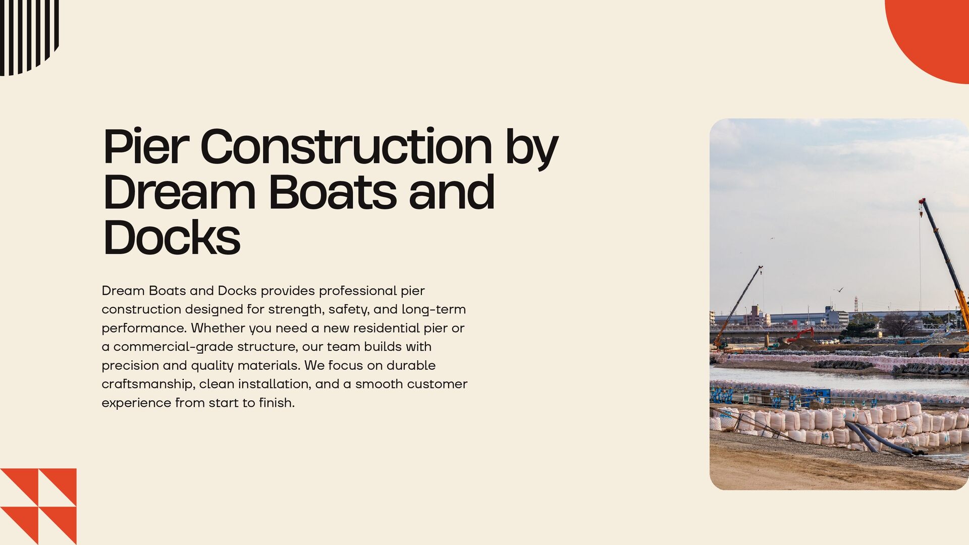 Dream Boats and Docks provides professional pier construction services designed for strength, safety, and long-term performance. From planning and permitting to installation and finishing, our team builds durable piers that fit your shoreline and lifestyle. Expect quality materials, expert craftsmanship, and a smooth, stress-free process from start to finish. Visit here: https://dreamboatdocks.com/services/piers/