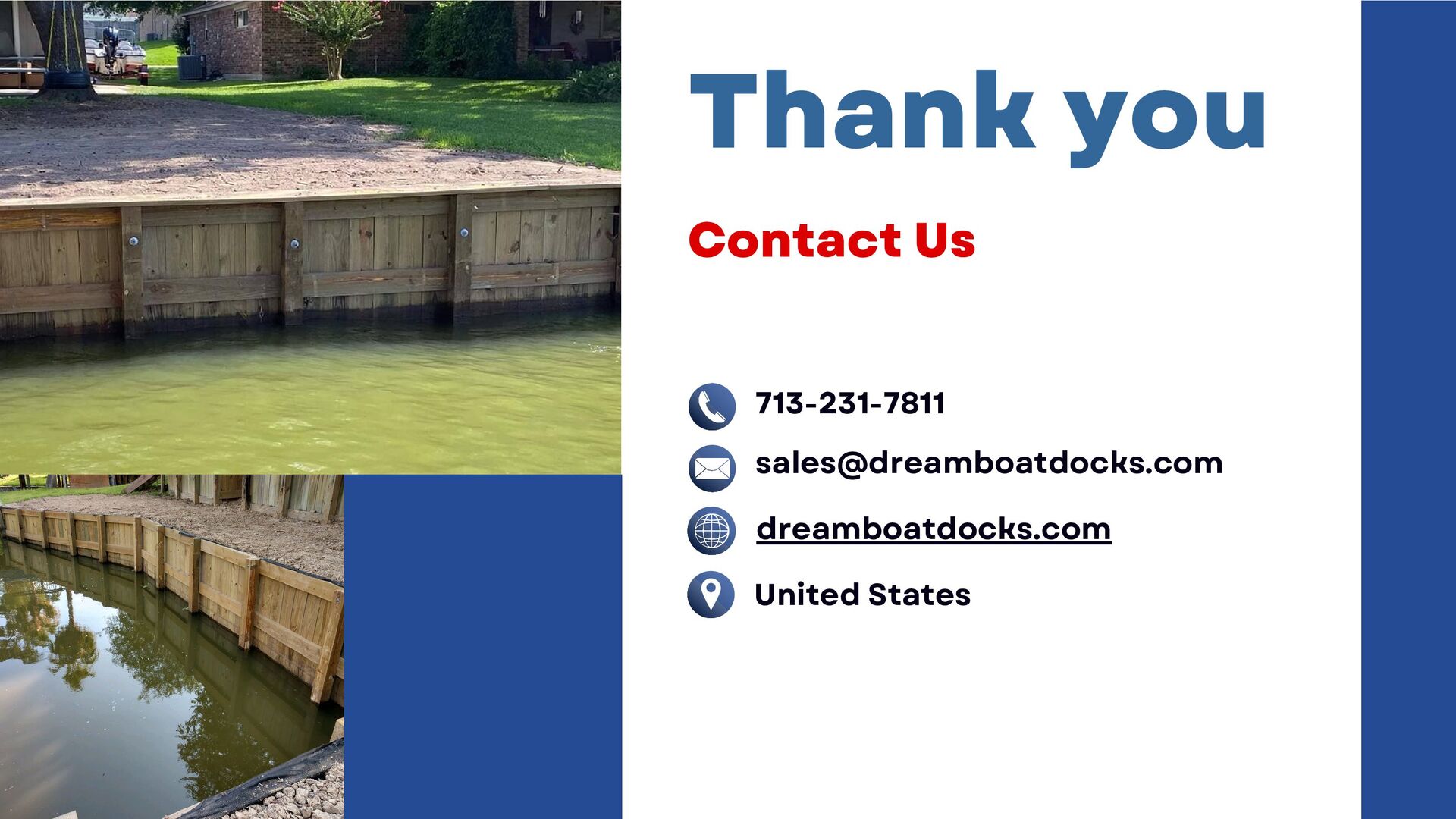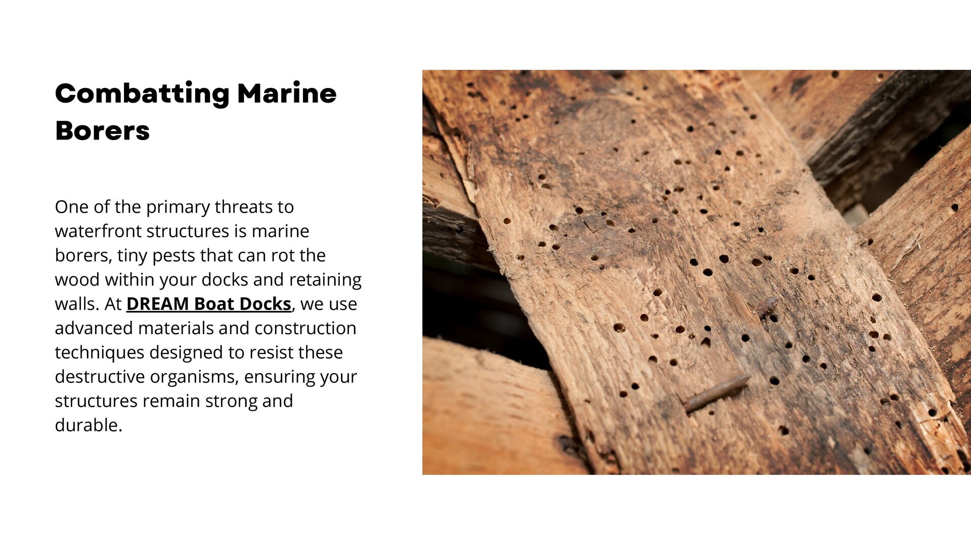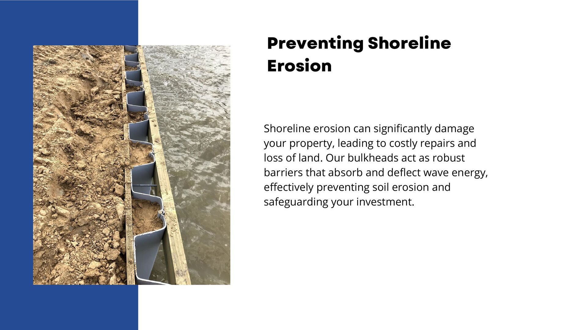 Dream Boat Docks, expert bulkhead builders, protect your property from erosion and marine borers with high-quality bulkheads. We offer customized solutions, from single slip docks to custom boathouses, ensuring durability and enhancing property value. Contact us today for exceptional craftsmanship and personalized service.