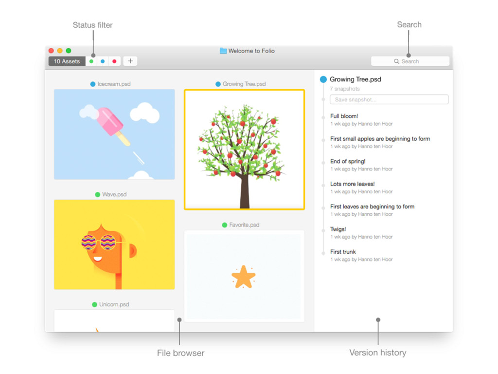 Folio • 以檔案夾為⼀一個專案 • 可以瀏覽檔案夾內所有檔案 • 可以另外轉存過去版本的檔案 • ⾃自動分類狀態(新增、修改、刪除) 3.