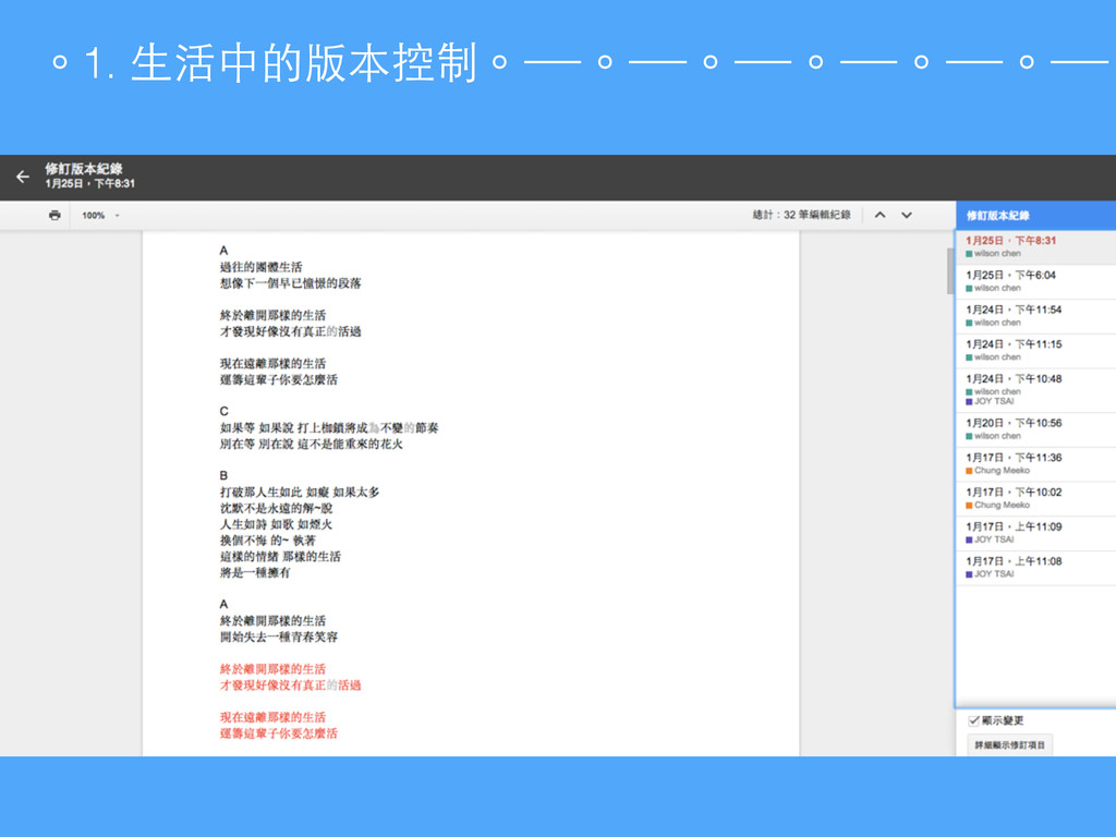 也可以多⼈人協作哦 3. 有那些版控⼯工具