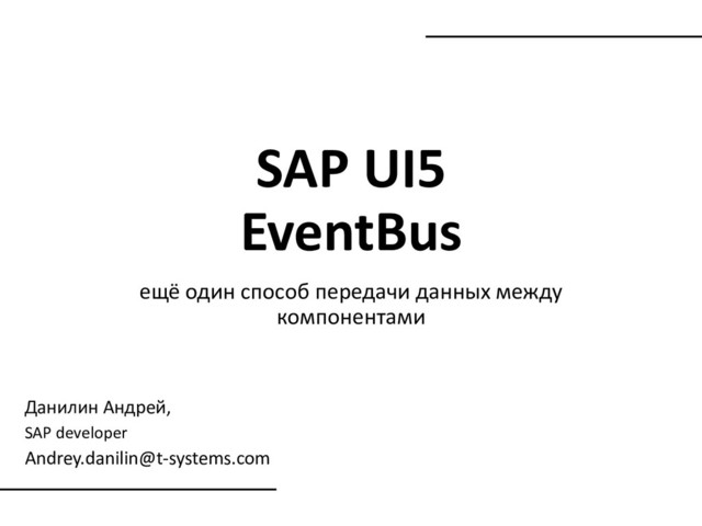 EventBus: sap.ui.getCore().getEventBus() • EventBus в случае приложения в FLP • SAP не рекомендует использовать глобальный EventBus – критично: отписываться от событий! • В дочерних компонентах можно получить доступ к родительскому EventBus через: sap.ui.core.Component.getOwnerComponentFor().getEventBus(); Sharing data between components