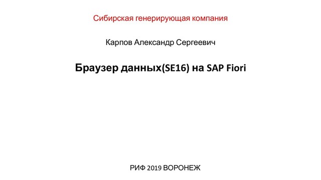 Карпов Александр - Браузер данных (SE16) на SAP Fiori