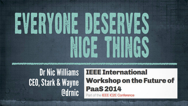 Keynote given to commence IEEE International Workshop on the Future of PaaS 2014.