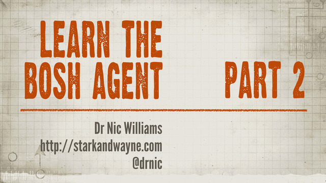 If you want to learn about bosh, then you'll want to learn about the bosh agent - it is how every server/instance is controlled by the bosh director. This part 2 of a 3 part short series into the inner workings of bosh from the perspective of the bosh agent itself.