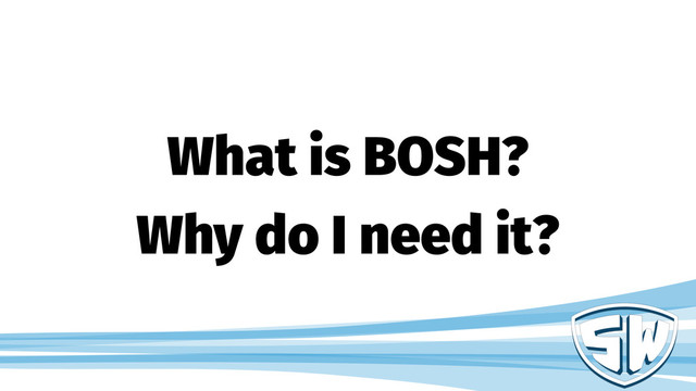during upgrade. Over 70 BOSH versions in 12 months. name: bosh releases: - name: bosh url: https://bosh.io/d/.../bosh?v=219 - name: bosh-aws-cpi url: https://bosh.io/d/.../bosh-aws-cpi-release?v=36 ...