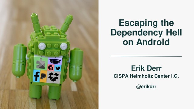 mapping of public APIs to supported versions Predict Library Updatability API usage of apps – Scan bytecode for API invocations of identified library com.fb.AppLinkData.getRef() com.fb.AccessToken.getExpires() com.fb.AccessToken.getDeclinedPermissions() com.fb.AccessToken.getUserId() com.fb.AppEventsLogger.deactivateApp(..) […] [3.5, 3.5.1, 3.5.2, 3.6] […, 3.22, 3.23, 3.23.1, 4.0, 4.0.1, …] […, 3.22, 3.23, 3.23.1] [4.0, 4.0.1, 4.1.0, …] […, 3.22, 3.23, 3.23.1] 3.23.1 3.23.1 3.23.1