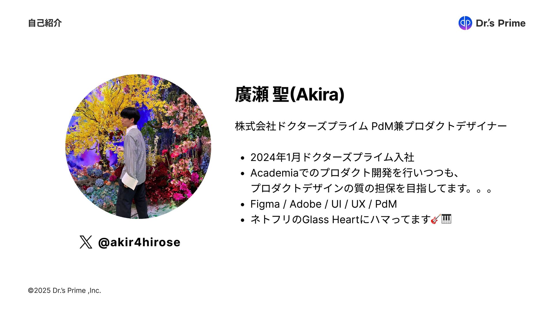 2023年に福岡の制作会社gazへ入社。スタートアップのクライアント案件で、1人目デザイナーとしてUIデザイン制作・開発に従事。2024年から株式会社ドクターズプライムに入社し、1人目デザイナーとして複数事業のプロダクトデザイン・そして幅広いデザイン制作を担当。最近は領域を広げ、PdMとして開発に取り組んでいる。
