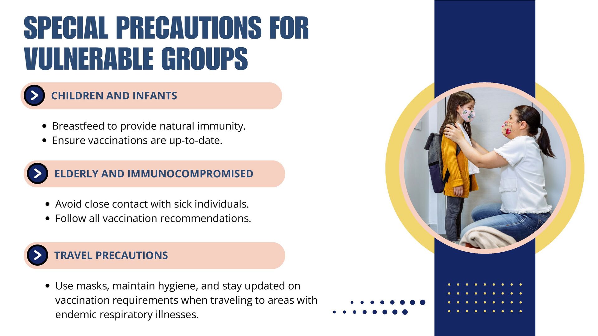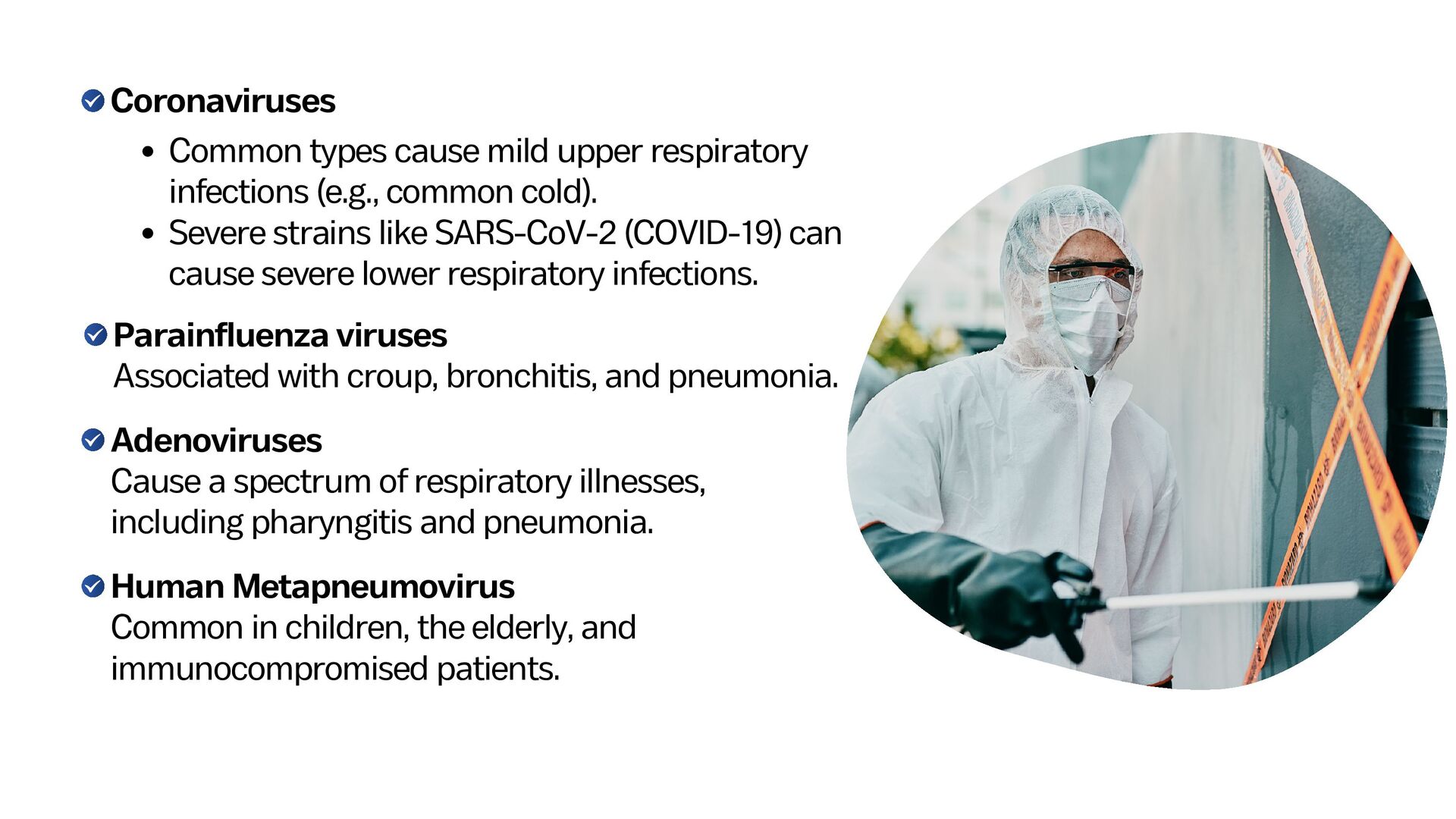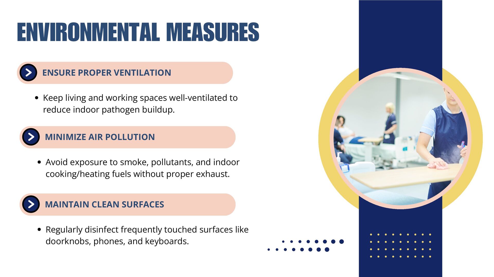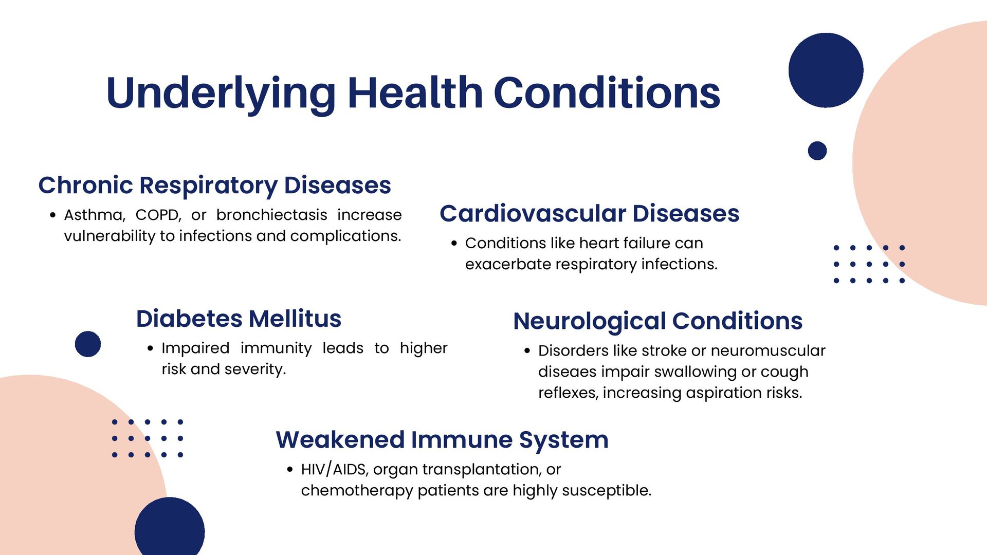 Acute respiratory infections (ARIs) affect the airways, making breathing difficult. Common symptoms include cough, fever, sore throat, congestion, and shortness of breath. ARIs can be caused by viruses (like influenza and COVID-19) or bacteria (such as pneumonia). Risk factors include a weak immune system, pollution, and smoking. Diagnosis involves physical examination, chest X-rays, and lab tests.