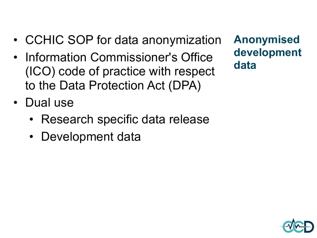 Information Commissioner's Office (ICO) code of practice with respect to the Data Protection Act (DPA) • Dual use • Research specific data release • Development data