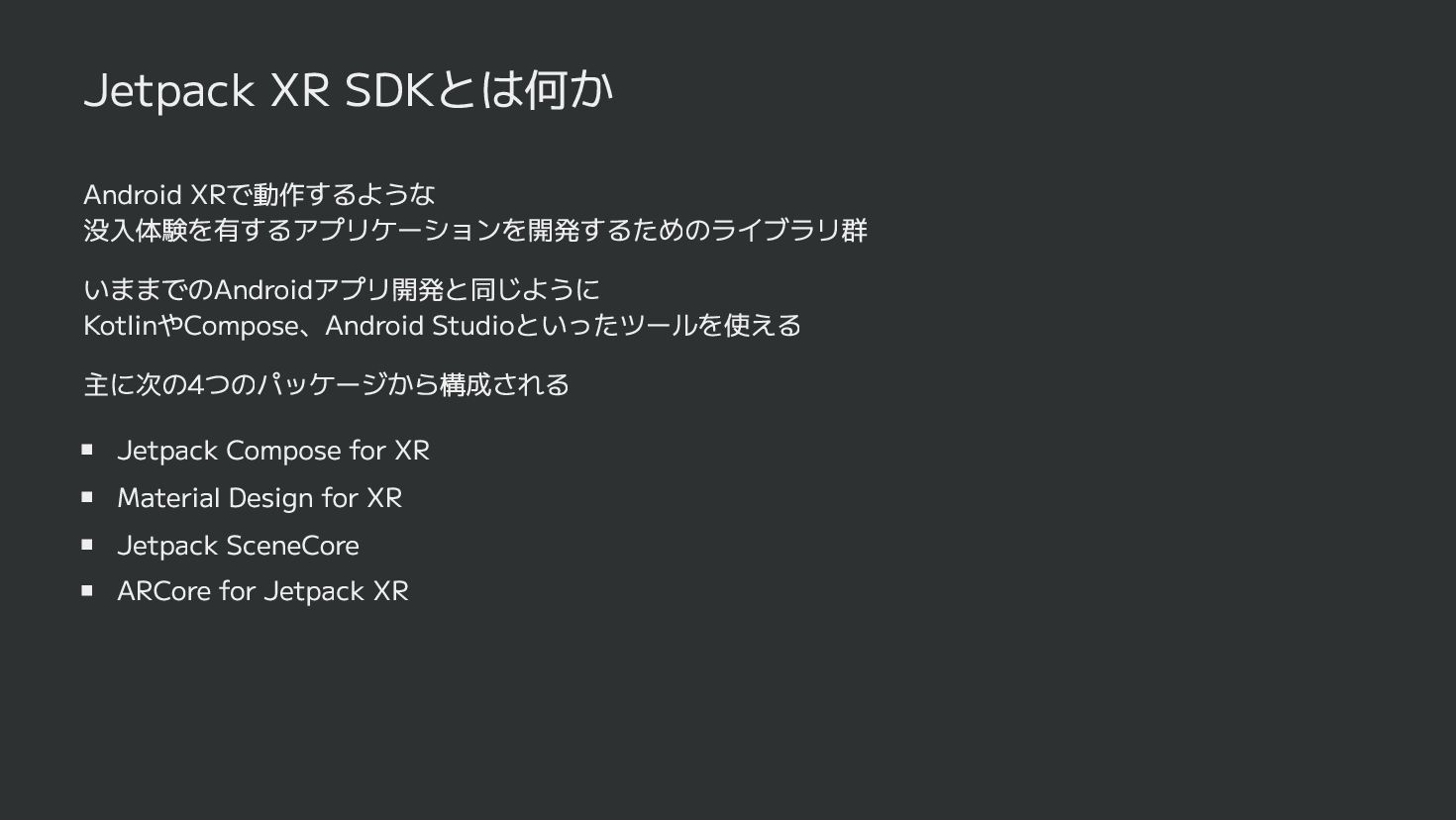 Jetpack XR SDKから紐解くAndroid XR開発と技術選定のヒント / about-androidxr-and-jetpack-xr-sdk