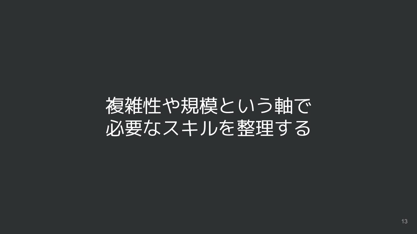 複雑性や規模という軸で 必要なスキルを整理する 13