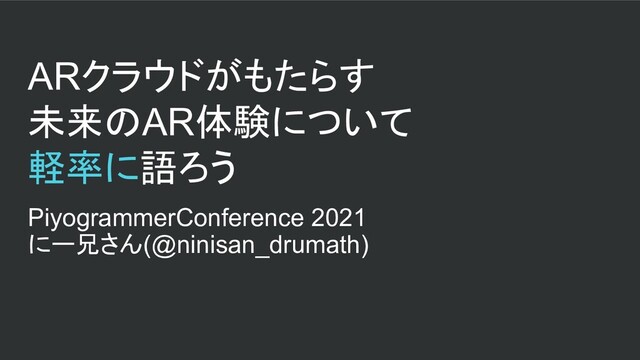 ARクラウドがもたらす 未来のAR体験について 軽率に語ろう PiyogrammerConference 2021 にー兄さん(@ninisan_drumath)