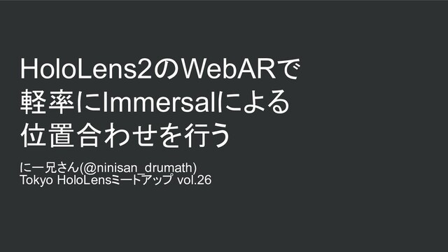 HoloLens2のWebARで 軽率にImmersalによる 位置合わせを行う にー兄さん(@ninisan_drumath) Tokyo HoloLensミートアップ vol.26