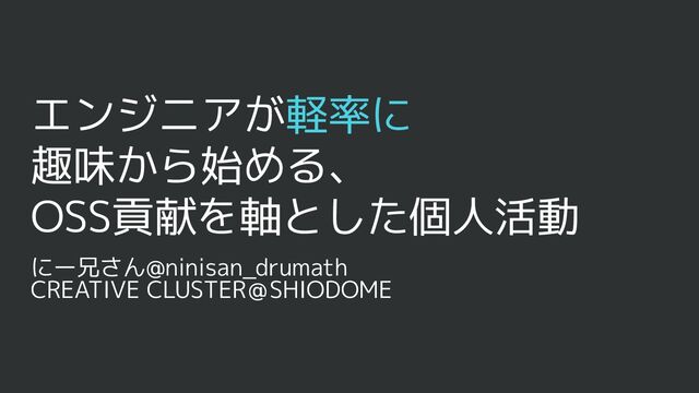 エンジニアが軽率に 趣味から始める、 OSS貢献を軸とした個人活動 にー兄さん@ninisan_drumath CREATIVE CLUSTER@SHIODOME