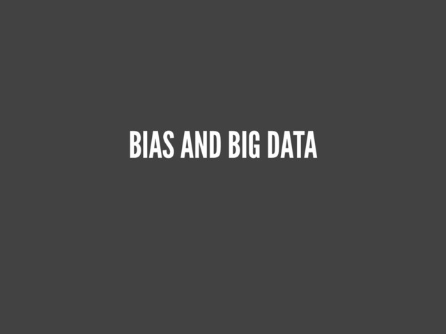 this taxonomy… a lot. It’s tentative. Call me on it.) • Biaswashing via Big Data’s/AI’s/ML’s supposed neutrality •That is, biasing Big Data analyses from the get-go, then justifying use of the results with “it’s the computer! the computer can’t be wrong!” • Patterns of bias in training data yielding (sometimes opaquely, sometimes obviously) biased results •AI/ML is pattern detection at heart… but it can’t tell patterns caused by bias from any other patterns it detects. •Training data may be biased by the trainers’ selection, or by bias in society at large. (Hold this thought; I’ll get back to it.) •(also, I am aware of the irony of building a taxonomy around a pattern-matching phenomenon notorious for bias!) • Implementing Big Data regimes against the powerless only •or, at least, only to START • Implementing Big Data regimes without assessing bias in results • Helping biased people act on bias
