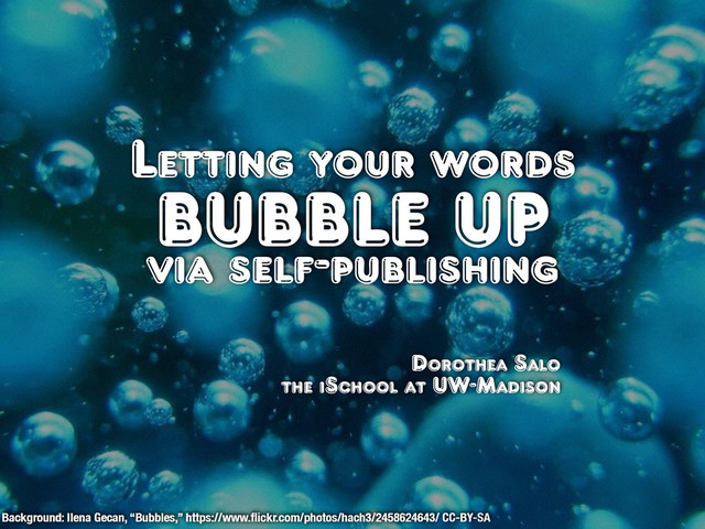 https://www.flickr.com/photos/hach3/2458624643/ CC-BY-SA Decisions, decisions • Print, Electronic, both? • If electronic, .EPUB, PDF, Kindle? • Art and design • … and that’s before we even get to marketing and sales