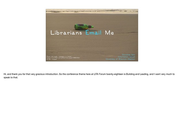 on {new thing}, a dude raised his hand and said, ‘but do i _have_ to do this?’ liiiiiiiike “We don’t need any of these fancy digital people. We need to hire some REAL LIBRARIANS.” Here’s another atmosphere-killer. The top quote is another of my experiences, actually, a conversation about me that I overheard in the cube farm a month or so into my first librarian job running the local institutional repository. A liaison librarian said {READ IT}. And I have to laugh at this, now that I’m not a Real Librarian any more—wow, prophecy, right?—but I can assure you, I wasn’t laughing at the time. I immediately dived into the Anxiety Zone and honestly, I never really came back out. The second one was a social-media bottle message, so I’ve redacted it a bit. {READ IT} A thing I see a lot in my bottle-messages is library staff in Edmondson’s too- much-comfort zone who don’t like change in general, or a specific change the library is making in particular… these people start openly foot-dragging, trash-talking the change, or even worse, taking their aggro out on the poor schmuck responsible for the new thing. Saima Kadir and Rick Peralez talked about this this morning—and unlike Saima and Rick, a lot of times library so-called leadership just lets this happen. Y’all, this is another of those things there ain’t no excuse for. Even highly collaborative environments CAN and DO make change without allowing this level of, and let me be blunt here, sabotage from within. I mean, is the U-W Madison iSchool changing? Oh, yeah. We’ve only even been the iSchool for, like, a year and a half; we just did a GIGANTIC identity change. Have I agreed with all the changes we’ve made? Nope. Have my colleagues? Naw. We’re an independent-minded and opinionated bunch; we disagree with one another often. But we talk it through beforehand, vote as needed, and get on with our lives afterward! Do ANY OF US trash-talk one another in public? No. It’s unimaginable. Do we foot-drag and bellyache and white-mutiny? We ain’t got TIME for that nonsense. Has any of us intentionally sabotaged change that has been formally agreed upon? Absolutely not—not even me, and y’all know by now how contrary I can be—and if any of us tried it I have full confidence our department chair would go to that person and read them the riot act. Because our department chair? Is a LEADER. Too many librarians with leadership titles are not leaders.