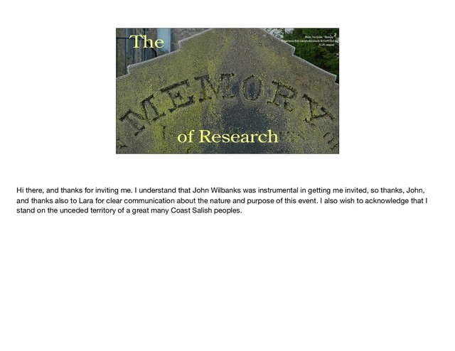 Hi there, and thanks for inviting me. I understand that John Wilbanks was instrumental in getting me invited, so thanks, John, and thanks also to Lara for clear communication about the nature and purpose of this event. I also wish to acknowledge that I stand on the unceded territory of a great many Coast Salish peoples.