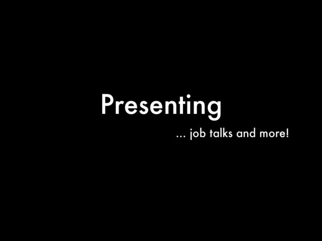 name on your first slide, plus affiliation if you have one. •For a job talk, see if you can work your name unobtrusively into the header/footer of every slide. You want them to remember who you are! •Name and contact info on last (“thank you!”) slide •If your talk is URL-heavy, bookmark and tag the URLs and give the URL for the tag up-front.