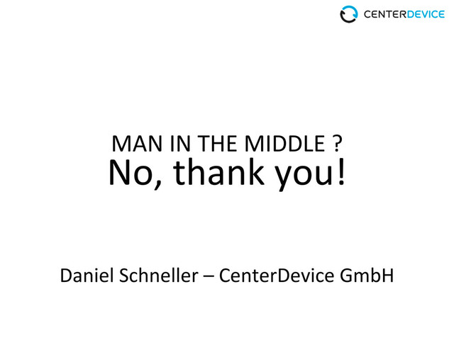 Using an example iOS application the talk shows how attackers can take possession of supposedly safely transmitted data, and how this can be prevented effectively by means of SSL Certificate pinning.