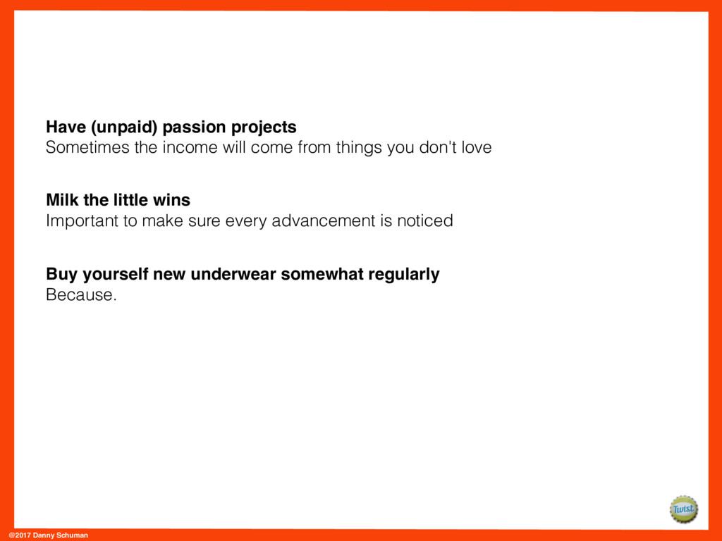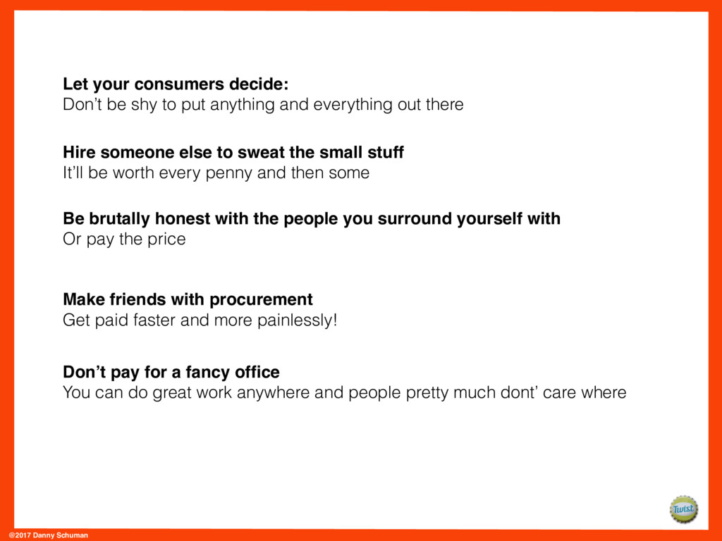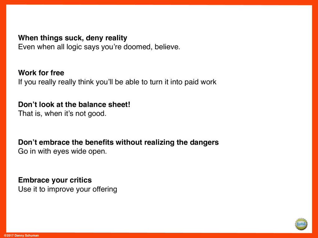 Those UDOT interviews have helped inform Danny’s to-be-published book on UDOTs, called The Worst Business Model in the World. They’ve also helped him start amassing a list of do’s and don’ts for achieving success as a UDOT.