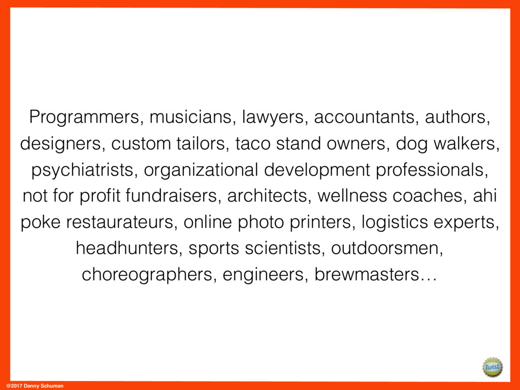 Danny Schuman has spent the past several months interviewing entrepreneurs who he calls UDOTs: Us Doing Our Thing. It’s the massive and constantly growing group of people who are out on their own, doing what they love, what they’re good at and passionate about it, but aren’t so in love with, good at, or passionate about the other side of being a UDOT: the legal, administrative, business development, etc part of the business. The stuff that gets in the way of doing what they love.